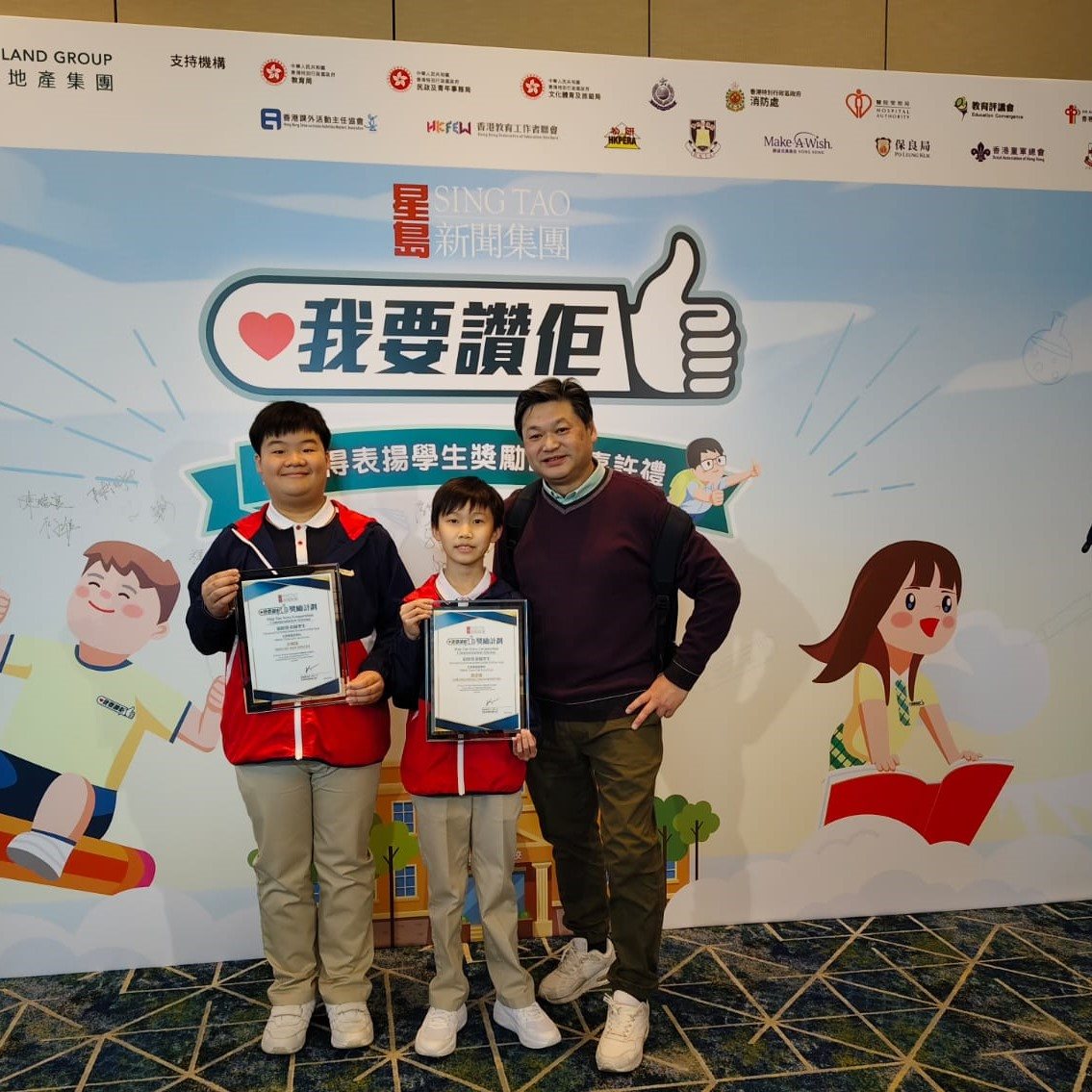 本校6A班文晞諾同學及6B班張宏駿同學榮獲星島新聞集團舉辦「《我要讚佢》最值得表揚學生獎勵」,讚賞同學生在全人發展等方面有優秀的表現。可喜可賀!