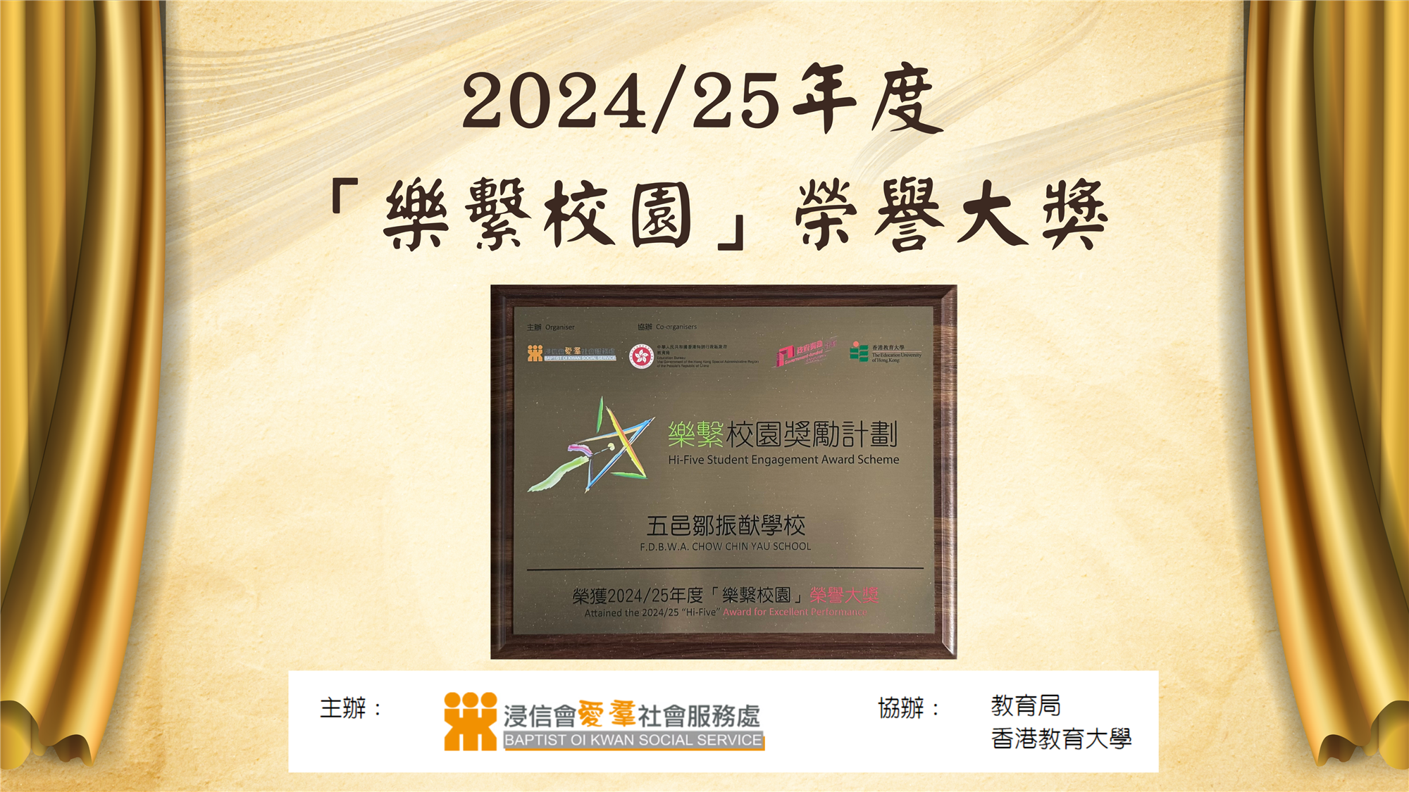 本校榮獲2024/25年度「樂繫校園」榮譽大獎,以表揚學校在不同範疇能顯示其策劃及實踐之努力!
