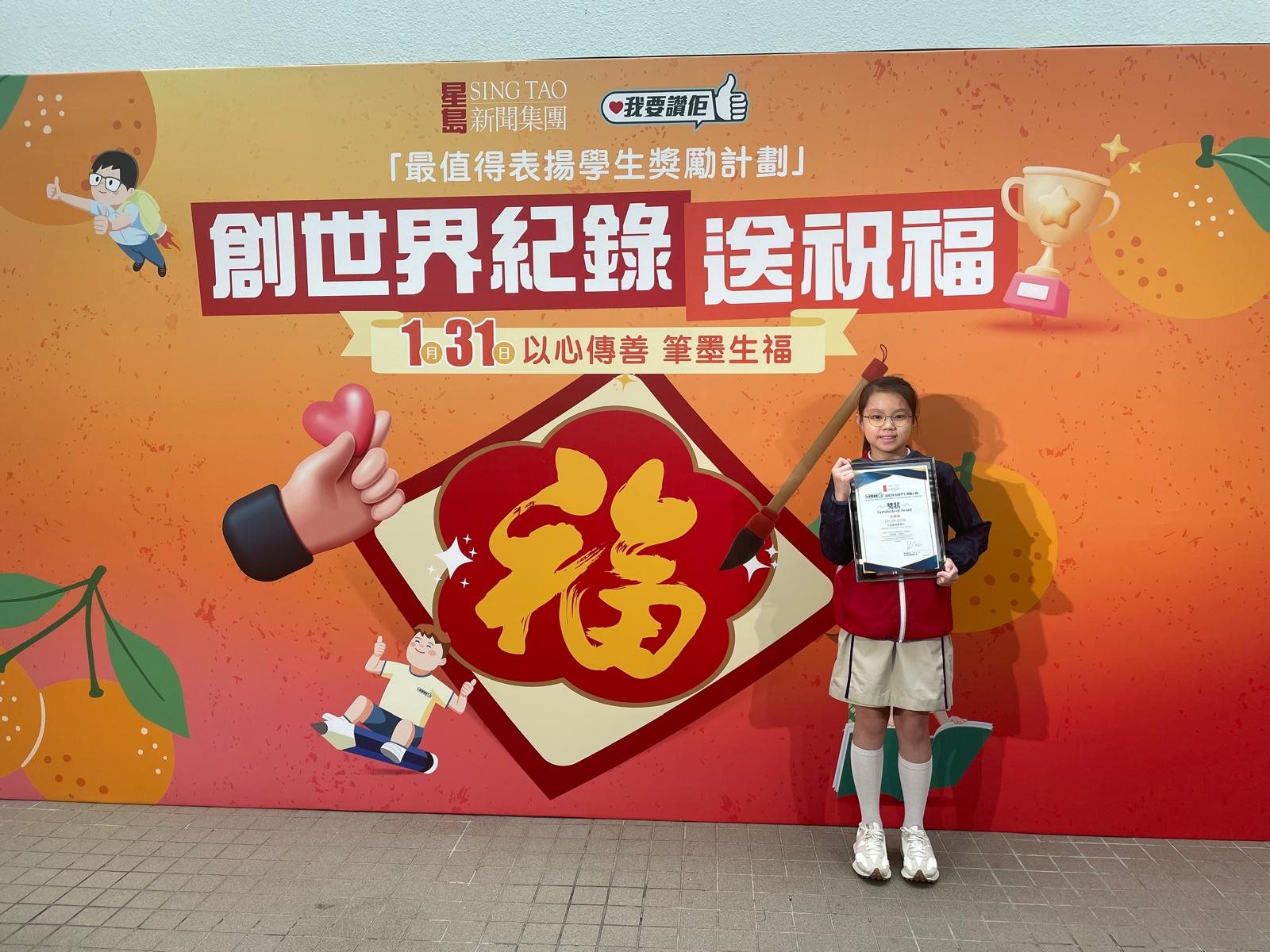 冼樂晴同學及5A班何頌茵同榮獲星島新聞集團舉辦